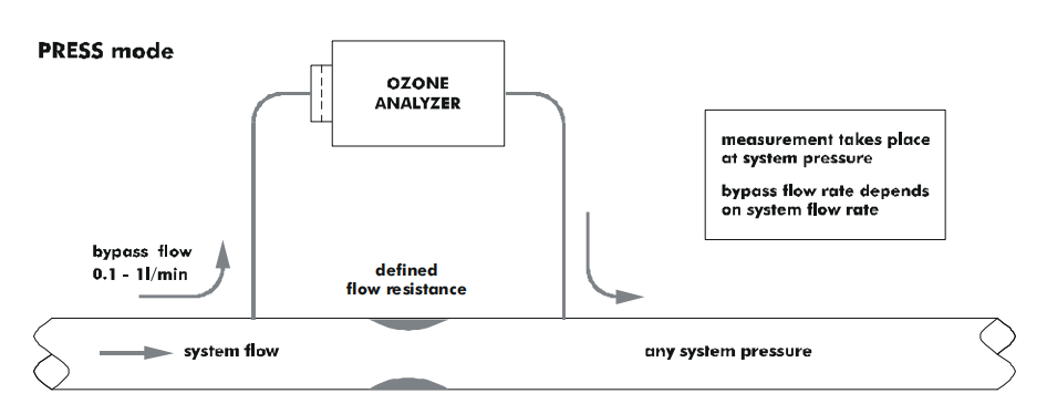 將分析儀連接到臭氧系統(tǒng)的兩種模式,全流式和旁通式,當然都需要配備有耐臭氧的內部壓力傳感器的分析儀。壓力傳感器的壓力范圍和由內部微處理器執(zhí)行的壓力補償范圍必須與臭氧系統(tǒng)中實際可能出現(xiàn)的壓力范圍相匹配。我們提供的壓力范圍為 0.5-1.5 至 0.5-4.0 bar 絕對壓力。